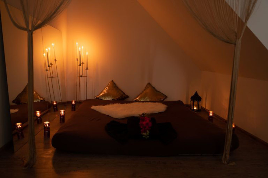 Es erwartet Dich Zimmer mit stimmungsvollem Licht und Luftbefeuchter mit Aromaölduft für ein angenehmes Raumklima.