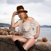 Haare:blond, schulterlang, wellig