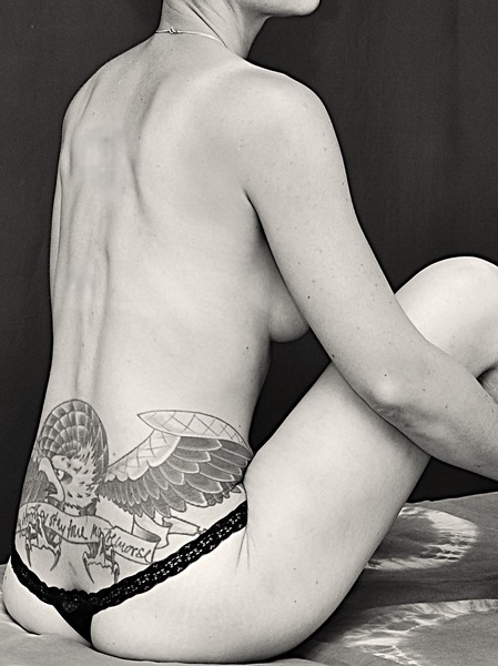Desweiteren habe ich eine schlanke, sportliche Figur, bin tätowiert, gepierct und glatt rasiert.